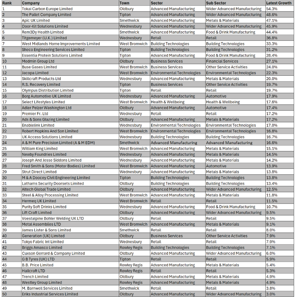 Sandwell’s Top 50 Fastest Growing Companies index is an annual business report that lists our borough’s 50 fastest growing companies by turnover. We love to celebrate their contribution to Sandwell’s economy and employment landscape, inspiring others to grow.